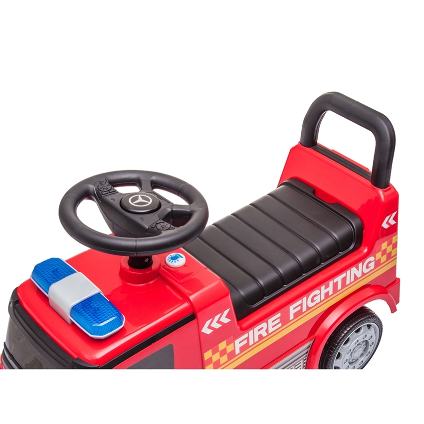 BabyTrold Mercedes Brandbil, Gåbil er den perfekte gåbil til små eventyrere, der drømmer om at blive en heltemodig brandmand! Med sit farverige og detaljerede design, der ligner en ægte brandbil, bringer denne gåbil masser af sjov og spænding til børns leg, samtidig med at den hjælper med at udvikle deres motorik og balance. Den stabile konstruktion og de brede hjul sikrer, at barnet kan køre sikkert og trygt, både indendørs og udendørs. Gåbilen har en lav højde, der gør det nemt for barnet at komme op og af, og det enkle styresystem giver barnet fuld kontrol over kørslen. Bilen er lavet af robust plast, der holder til daglig brug og sørger for langvarig glæde. Det livlige og farverige design af brandbilen med detaljer som forlygter og en realistisk brandbil-front vil helt sikkert fange børns opmærksomhed og stimulere deres fantasi. Samtidig er gåbilen en sjov måde at udvikle barnets motoriske færdigheder, da den styrker balancen og koordinationen. Denne BabyTrold brand bil er en luksus udgave og den leveres med sirene og lys.