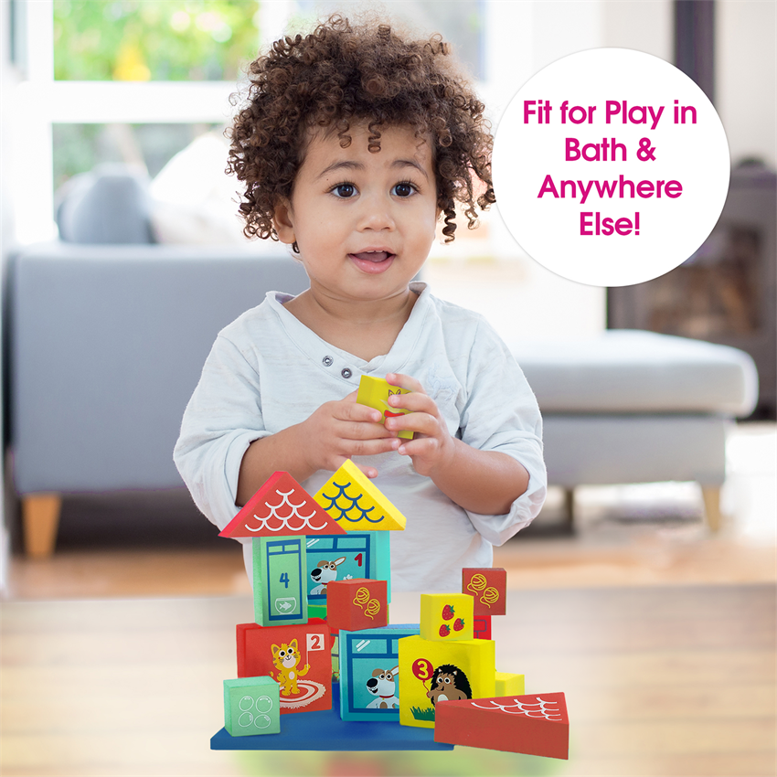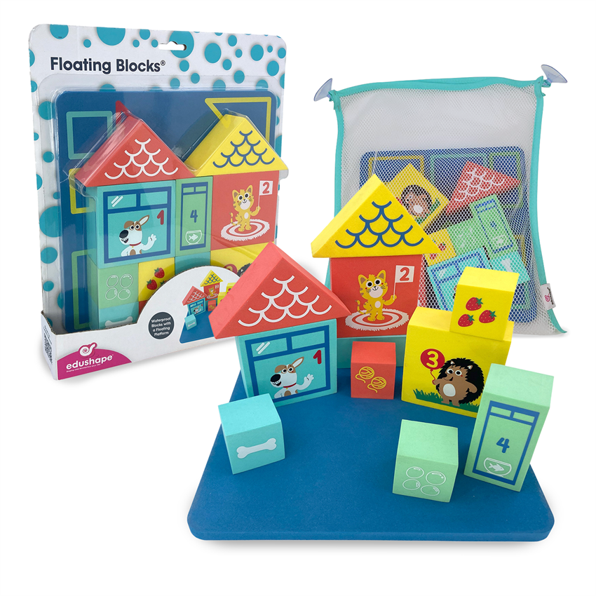 Unique construction blocks fit for play in water & anywhere else! Lightweight, durable foam blocks come with a floating platform that supports learning & fun during bath time. Blocks are designed with numbers, shapes, colors, and animal characters to allow for mix & match games that will teach your little one core reasoning concepts. Turn bath time into a time for learning & educational play!