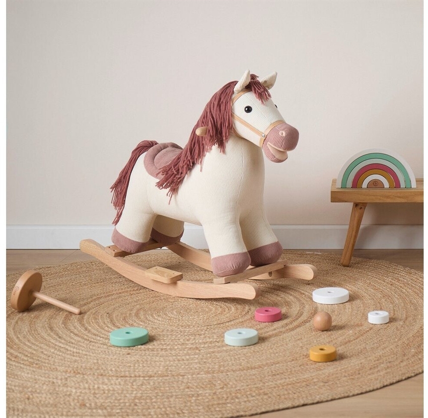 Gyngehesten,vejer 4 kg og kan bære en belastning på op til 26 kg